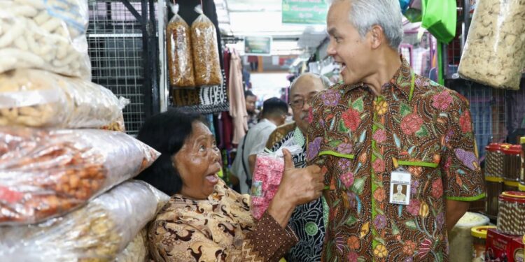 Semarang – bedanews.com – Suasana di Pasar Johar, Kota Semarang tampak meriah saat Gubernur Jawa Tengah, Ganjar Pranowo blusukan, Rabu (5/4/2023). Kedatangan Ganjar di siang itu, untuk meninjau pelaksanaan operasi pasar dan sekaligus memantau harga kebutuhan pokok menjelang Idul Fitri 1444 H.