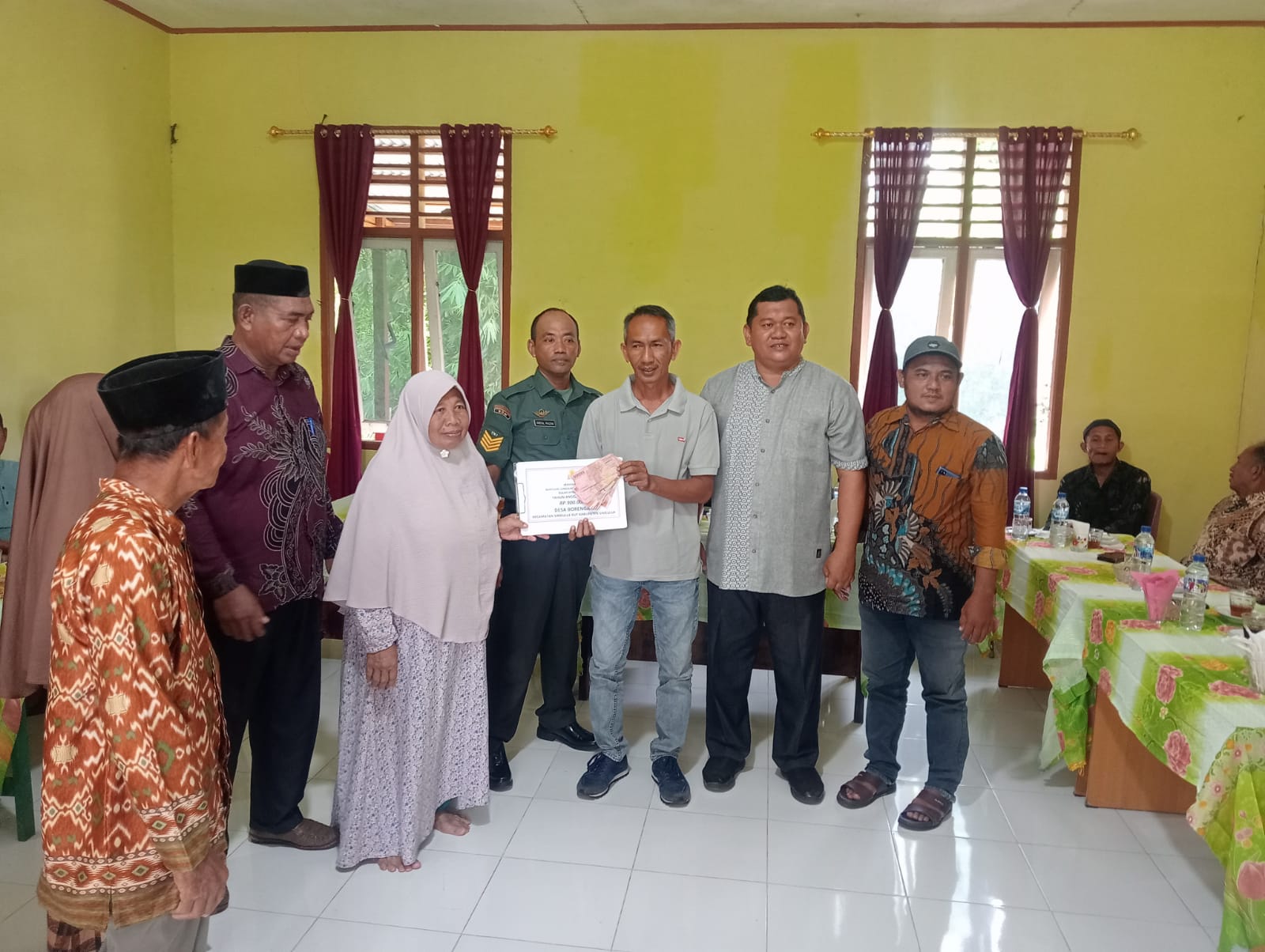 Simeulue – Batituud Koramil 02/Simteng Serma Abdul Razak menghadiri sekaligus melakukan pendampingan dan pengawalan kegiatan penyaluran Bantuan Langsung Tunai (BLT) Dana Desa sebanyak 35 orang penerima untuk 3 bulan dari bulan April s/d Juni sebesar Rp. 300.000, bertempat di Kantor Desa Borongan Kec. Simeulue Cut, Jum’at (02/05/2025).