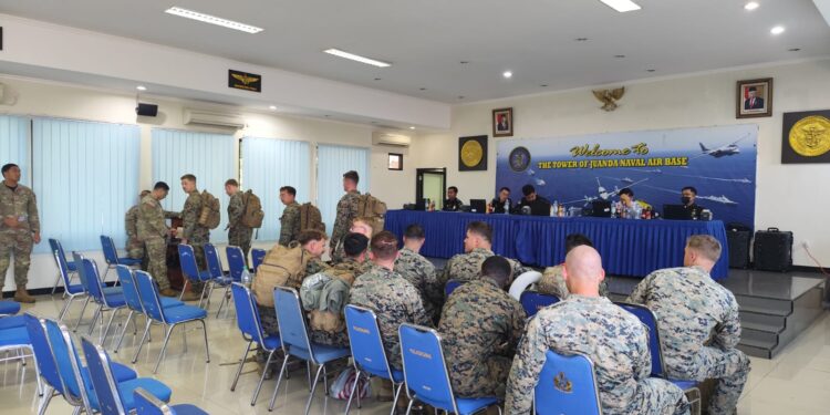 Jatim – Ratusan Prajurit Angkatan Darat dan Marinir Amerika Serikat mendarat di Pangkalan Udara TNI AL (Lanudal) Juanda, Surabaya dalam rangka mengikuti Latihan Gabungan Bersama Multi Nasional bertajuk Super Garuda Shield tahun 2024, Rabu (21/8/2024).