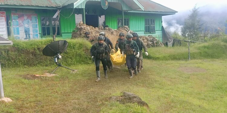 Timika – Pasca Aparat Keamanan (Apkam) Gabungan TNI Polri merebut Distrik Homeyo, Kabupaten Intan Jaya, dari Organisasi Papua Merdeka (OPM), selanjutnya Apkam Gabungan TNI Polri berhasil mengevakuasi jenazah Almarhum Alexsander Parapak, korban penembakan OPM. Proses evakuasi berhasil dilakukan pada hari Sabtu, 4 Mei 2024, atau sehari pasca perebutan wilayah Homeyo oleh Apkam Gabungan TNI Polri.