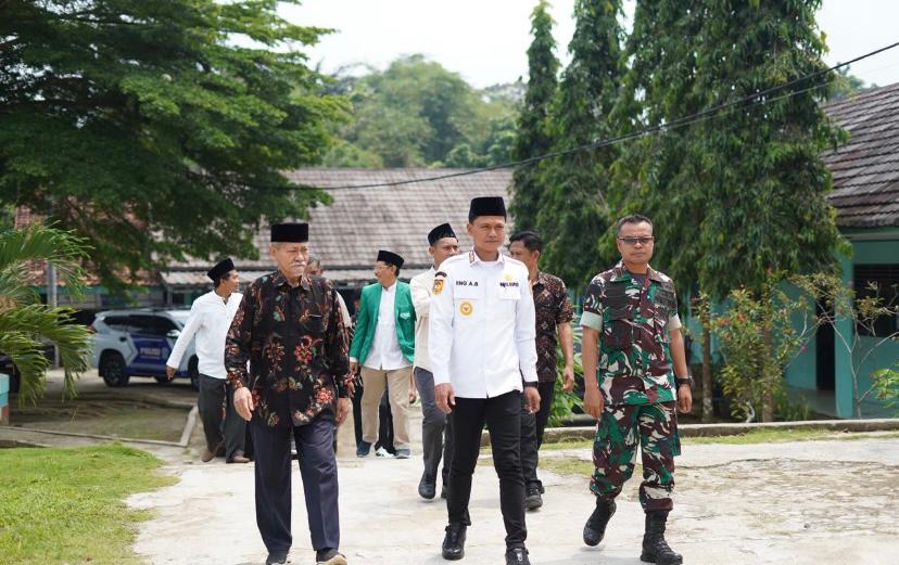 TINJAU-Ketua Umum PBMA, KH Embay Mulya Syarief (kiri), Wakil Bupati Pandeglang, Iing Andri Supriadi (tengah), dan Dandim 0601/Pandeglang, Letkol Inf. Afri Swandi Ritonga (kanan) saat bersiap melakukan peninjauan dapur SPPG di kompleks Perguruan Mathla’ul Anwar Pusat di Menes, Pandeglang, Banten, Sabtu 11 Oktober 2025. (Foto: Dok. Humas PBMA).