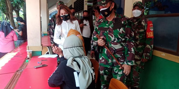 Dandim 0506/Tgr, Kolonel Inf Bambang Hery Tugiyono datang langsung ke lokasi pelaksanaan vaksinasi yang digelar di halaman SDN Pamulang Timur 02 Kel Pamulang Timur, Kec Pamulang, Tangerang Selatan, Sabtu (11/09/2021).