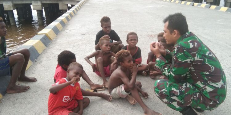 Timika, bedanews.com — Babinsa Koramil 1710-07/Mapurujaya, Serma Bambang melaksanakan Komsos dengan anak-anak di wilayah binaannya di Kp. Pomako, Distrik Mimika Timur, Kabupaten Mimika, Kamis (25/05/2023). Kegiatan Komsos tidak hanya dilakukan kepada orang dewasa namun kepada semua kalangan khususnya anak-anak karena Babinsa sangat peduli dengan generasi penerus bangsa.
