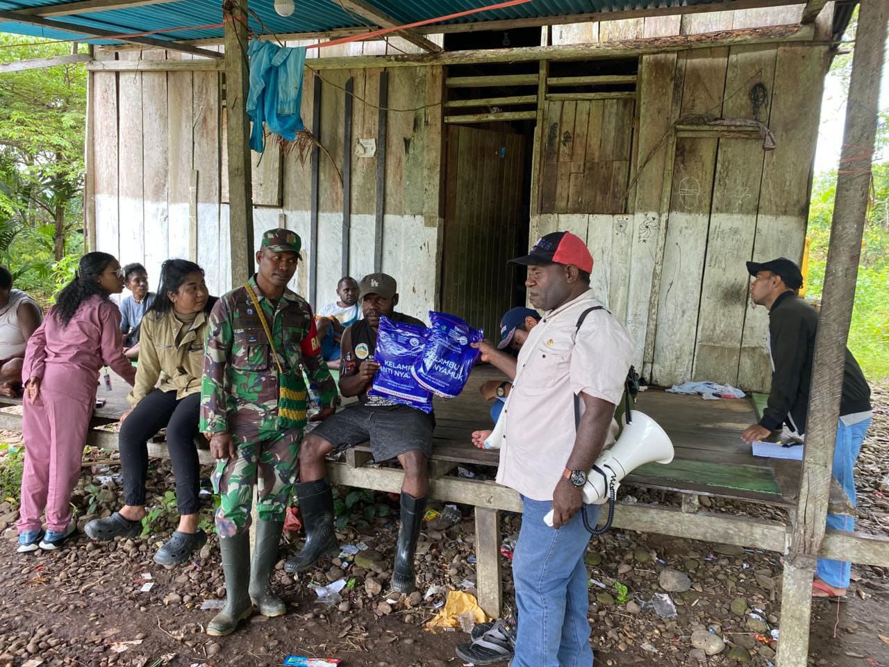 Peduli Kesehatan Warga Binaan, Babinsa Koramil 1710-06/Agimuga Dampingi Nakes Bagikan Kelambu Berinsektisida