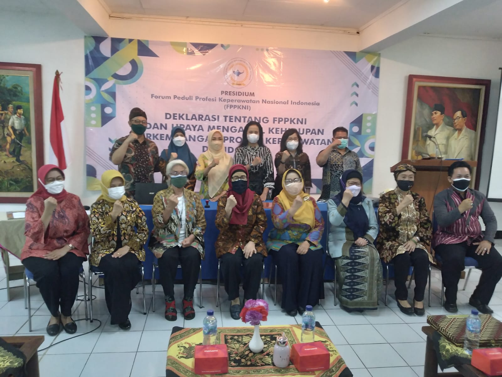 Adapun susunan kepengurusan dari FPPKNI antara lain Ketua FPPKNI, Prof. Dra. Elly Nurrachmah, skp, M.App.Sc, DNSC bersama Sekretaris Dr. Rita Sekarsari, S.Kp, MHSM., FISQua membacakan Deklarasi tersebut, didampingi Pengurus FPPKNI lain yakni: Prof. Achir Yani S. Hamid, MN, DNSC; Prof. Dr. Budi Anna Keliat, S.Kp., M.App.Sc; Prof. Yeni Rustina, S.Kp., M.App.Sc, PhD; Johanna R. Hendriks, BSc., Dpl Nursing Admin., CVRN; Maria Indrijani Widjaja, SKM dan Dr. Ibrahim, S.Kp., SPd., M.Kes.