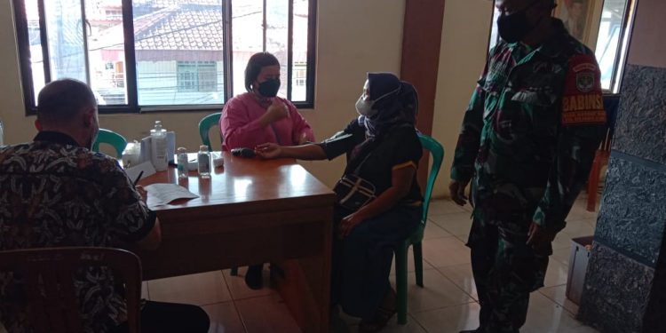 Bekasi – bedanews.com – Pelda Solikhin, Babinsa Kp. Tanah Baru RT 01/02 desa Karang Baru, kec. Cikarang Utara, kab Bekasi melaksanakan pendampingan vaksinasi pfizer dari PKM Kec. Cikarang Utara, DPP dr Afrizal tahap 2, Rabu (27/10).