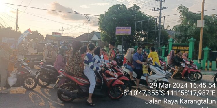 Tulungagung – bedanews.com – Bati Bhakti TNI Koramil Tipe B 0807/08 Kalidawir, Pelda Heri Winarno bersama anggota melaksanakan kegiatan pembagian takjil kepada warga masyarakat pengguna jalan di depan Makoramil Kalidawir Kecamatan Kalidawir, Kabupaten Tulungagung, Jawa Timur, Jum’at (29/03/2024).