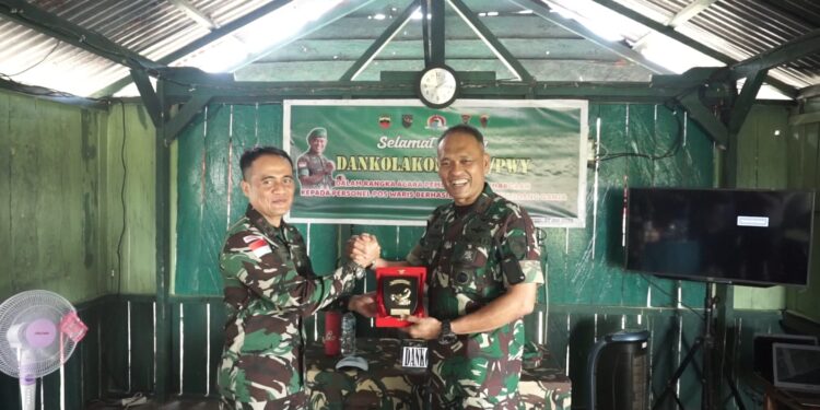 Keerom – bedanews.com – Dankolakops Rem 172/PWY, Brigjen TNI J.O. Sembiring S.H, S.E., M.M memberikan penghargaan kepada personel yang berprestasi dalam kunjungan kerjanya ke pos-pos Satgas Pamtas RI-PNG Yonif 126/KC.