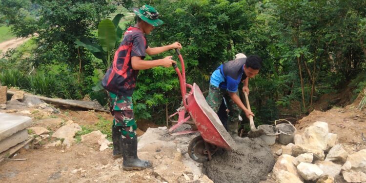 Bantul – Pembangunan talud dan drainase di TMMD Reguler 119 Kodim 0729 Bantul di Dusun Tangkil, Kalurahan Muntuk, Kapanewon Dlingo dengan lebar 12 M dan Bentang 12 M. Senin (11/03)