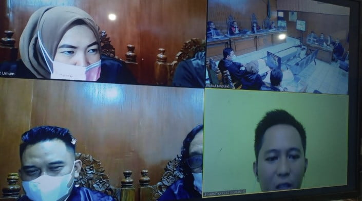 Sidang dengan ketua majelis Achmad Satibi, S. H.,M.H dilakukan secara online, dimana terdakwa Doni Salanan mengikuti persidangan dari dalam Lapas Jelekong Kab Bandung.