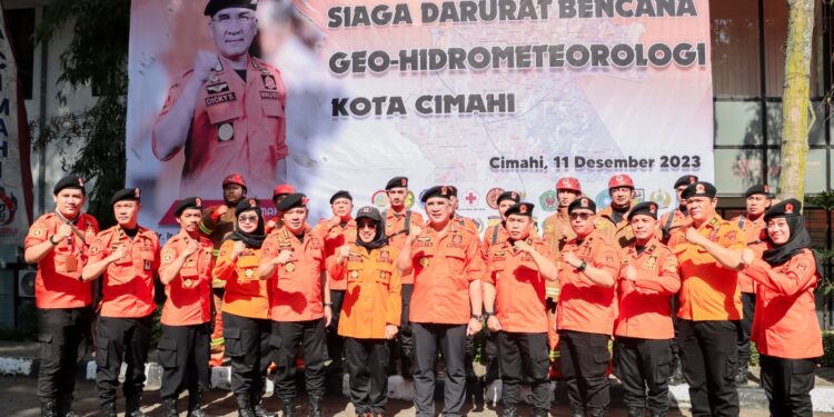 CIMAHI, BEDANews.com – Pemerintah Kota Cimahi melalui Badan Penanggulangan Bencana Daerah (BPBD) Kota Cimahi mengadakan Apel  Gelar Pasukan Siaga Darurat Bencana Geo-Hidrometeorologi Tingkat Kota Cimahi Tahun 2023 bertempat di lapangan apel pemkot Cimahi, Senin (11/12/2023).