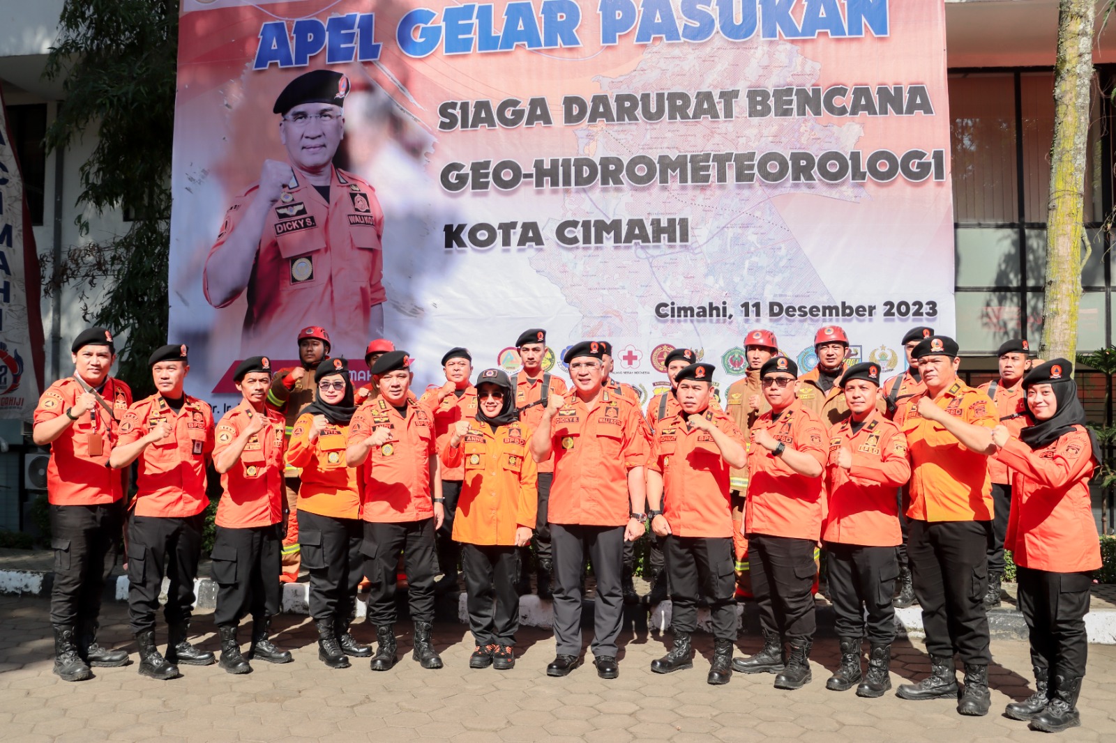 Pj. Wali Kota Cimahi Dicky Saromi. memimpin langsung Apel Gelar Pasukan, didampingi Kepala Badan Penanggulangan Bencana Daerah (BPBD) Kota Cimahi Dikdik S. Nugrahawan dan Kepala Pelaksana (Kalak) BPBD Kota Cimahi Fithryandi Kurniawan, turut hadir Brigjen TNI Lukmansyah Ketua Koordinator Pengendalian Operasi BNPB RI, Plh. Kepala BPBD Provinsi Jawa Barat Anne Hermadiane, S.Sos., M.A., Kepala OPD dilingkungan Pemerintah Daerah Kota Cimahi, unsur TNI (Kodim 0609), unsur Polri (Polres Cimahi), Kejaksanaan Negeri Cimahi, Camat, Lurah, Badan Nasional Pencarian dan Pertolongan (BNPP/BASARNAS) Bandung, Forum Pengurangan Risiko Bencana (FPRB), Taruna Siaga Bencana (TAGANA), dan Relawan kebencanaan.