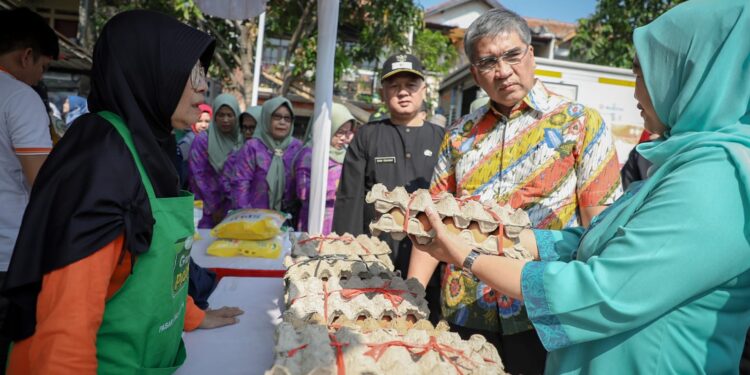 CIMAHI, BEDANews.com – Untuk mendukung usaha dari produsen binaan (KTNA, KWT, Gapoktan) serta para pelaku usaha pangan di Kota Cimahi, Pemerintah Daerah Kota Cimahi melalui Dinas Pangan dan Pertanian (Dispangtan) Kota Cimahi kembali menggelar Gerakan Pangan Murah Pangan Pokok dan Segar Cimahi (GPM PANGSI) di Lapang Melong Green Garden, Kelurahan Melong Kecamatan Cimahi Selatan Kota Cimahi, Kamis (2/11/2023).
