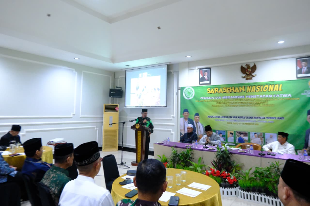 Apresiasi tersebut disampaikan Wakil Gubernur Jambi, Drs. H. Abdullah Sani, M.Pd.I, dalam kegiatan sarasehan yang mengangkat tema produktivitas lembaga berbasis fatwa, kepatuhan hukum, dan perspektif hak asasi manusia (HAM). Acara berlangsung di Ratu Hotel Jambi, Sabtu (14/02/2026) pagi.