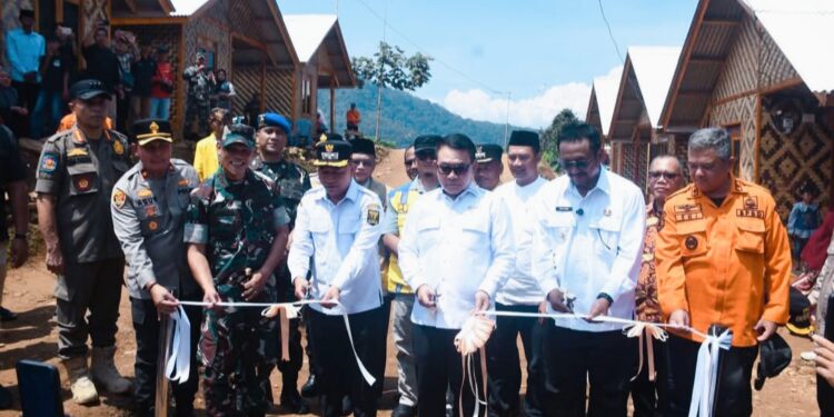 SUKABUMI || Bedanews.com – Penasehat Khusus Presiden Bidang Pertahanan Nasional, Jenderal TNI (Purn) Prof. Dr. H. Dudung Abdurachman didampingi Bupati Sukabumi, H. Asep Japar dan Wabup, H. Andreas meresmikan Hunian Tetap (Huntap) adaptif bencana di Desa Sukarame, Kecamatan Cisolok, Kabupaten Sukabumi, Kamis (16/4/2026).