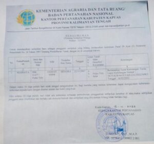 Kuala Kapuas – bedanews.com – Kementerian Agraria Dan Tata Ruang/Badan Pertanahan Nasional Kantor Pertanahan Kabupaten Kapuas, Provinsi Kalimantan Tengah Jln Tambun Bungai No 44 Kuala Kapuas 73516 Telp (0513) – 21046