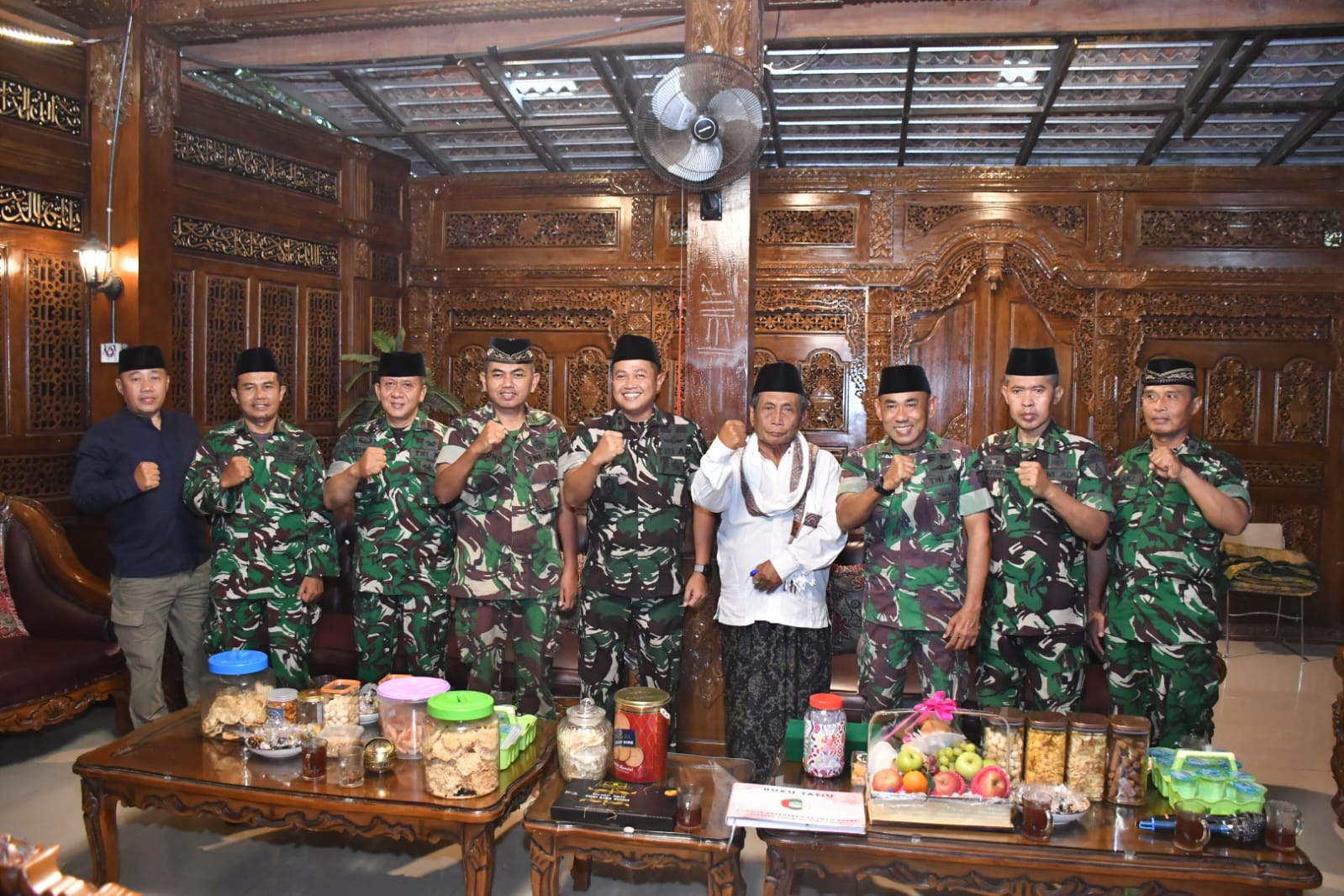 Dandim Ponorogo beserta rombongan yang terdiri dari Kasdim 0802/Ponorogo, Mayor Inf Agus Budi C dan para Perwira Staf, serta Danramil Tipe B 0802/03/Babadan, ditambah Danunit Intel Kodim 0802/Ponorogo tersebut, disambut langsung oleh Pimpinan Ponpes Al-Iman KH. Imam Bajuri, M.Pdi.