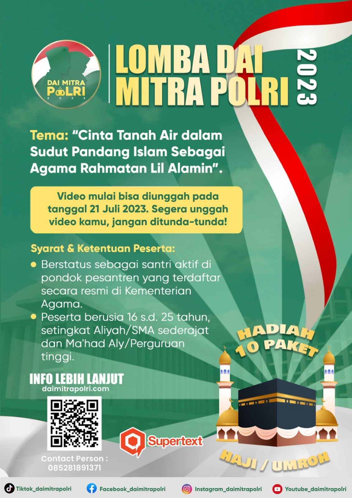 Jakarta – bedanews.com – Dalam kolaborasi yang menarik, Densus 88 menggandeng Supertext, sebuah aplikasi dialog dan komunitas terkemuka bertekad menjadikan kompetisi Dai Mitra Polri 2023 sukses besar sebagai bagian dari perayaan Hari Santri 2023.