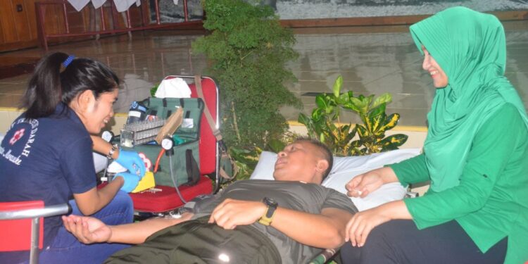 Merauke, bedanews.com — Dalam rangka memperingati HUT Persit Ke-77 tahun 2023, Persit KCK Koorcab Korem 174 menggelar kegiatan donor darah, bertempat di Aula L.B. Moerdani, Makorem 174/Merauke, Jumat (10/03/2023). Kegiatan donor darah ini bekerja sama dengan Unit Transfusi Darah UTD PMI Merauke, dengan peserta Ibu-ibu Persit serta prajurit TNI AD yang berada di Makorem maupun dari satuan jajaran yang ada di bawahnya.
