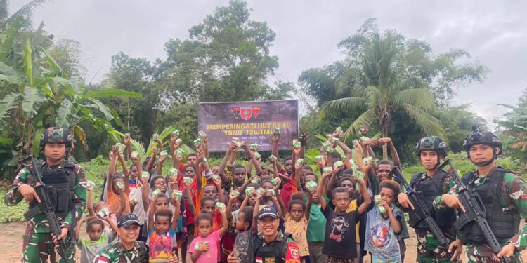 Merauke – Dalam rangka memeringati HUT Yonif 726/Tml yang ke 60 serta memberikan sumbangsih nyata bagi masyarakat yang tinggal di perbatasan RI-PNG, Satgas Pamtas Yonif 726/Tml menggelar beberapa kegiatan bhakti sosial di Distrik Sota, Kabupaten Merauke, Provinsi Papua Selatan, Jumat (05/07/2024).