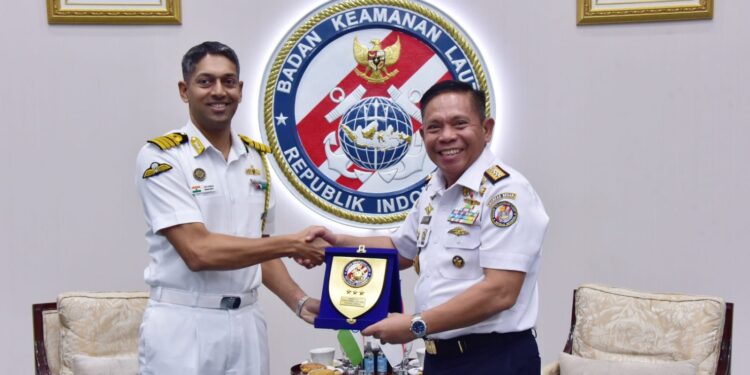 Jakarta, bedanews.com – Kepala Bakamla RI Laksdya TNI Dr. Irvansyah, S.H., M.Tr.Opsla., menerima kunjungan kehormatan dari Atase Pertahanan (Athan) India Captain Shiv Kumar. Pertemuan berlangsung di Aula Ary Hasibuan Mabes Bakamla RI, Jakarta Pusat, Selasa (27/02/2024).