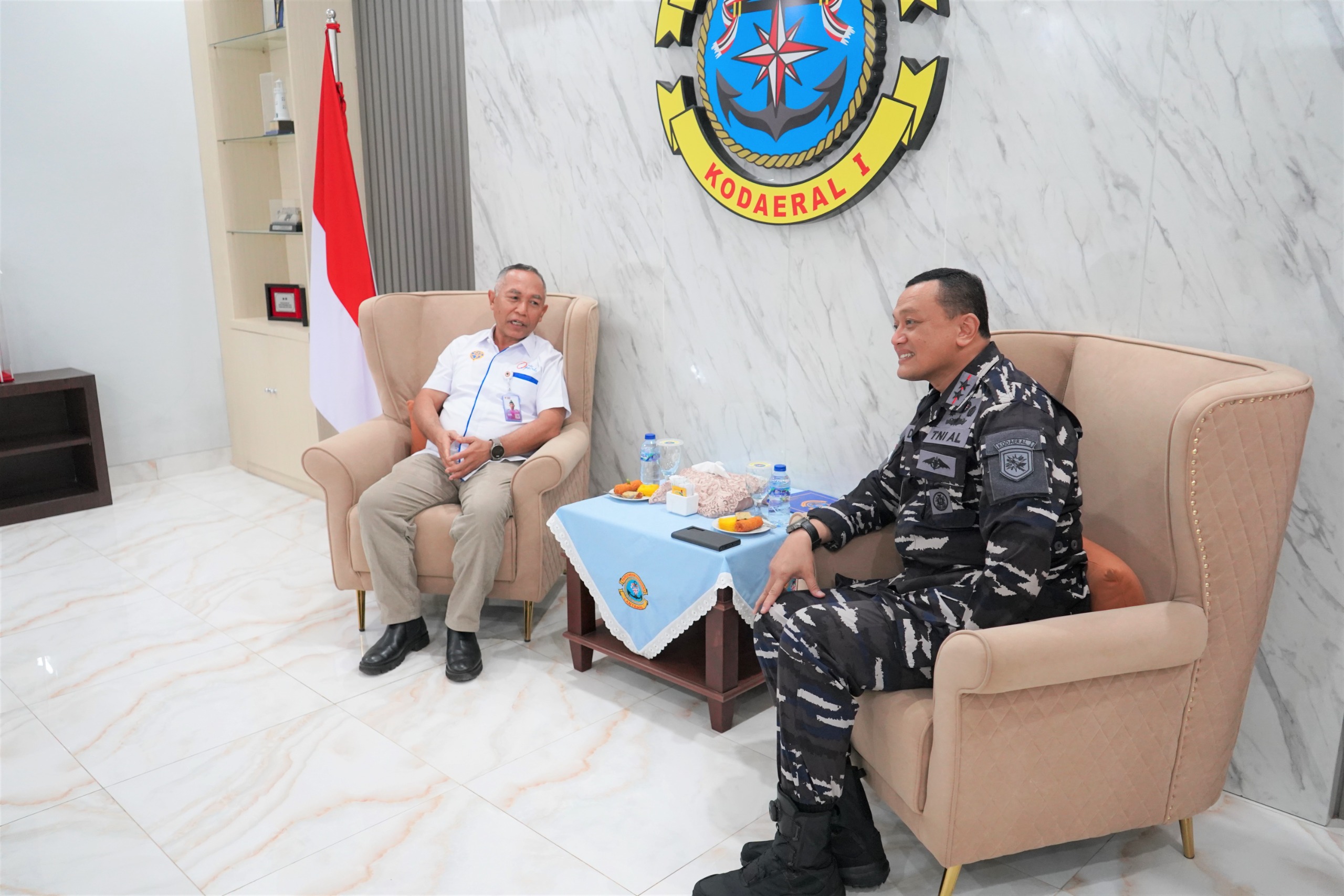 Belawan,- Komandan Komando Daerah Angkatan Laut I (Dankodaeral I) Laksamana Muda TNI Deny Septiana, S.I.P., M.A.P., melaksanakan Kunjungan Kehormatan (Courtesy Call) ke Panglima Komando Daerah Militer I/Bukit Barisan (Pangdam I/BB) Mayjen TNI Rio Firdianto, bertempat di Ruang VIP Makodam I/BB, Jalan Gatot Subroto KM 7, Medan, Sumatera Utara, Kamis (11/09/2025).