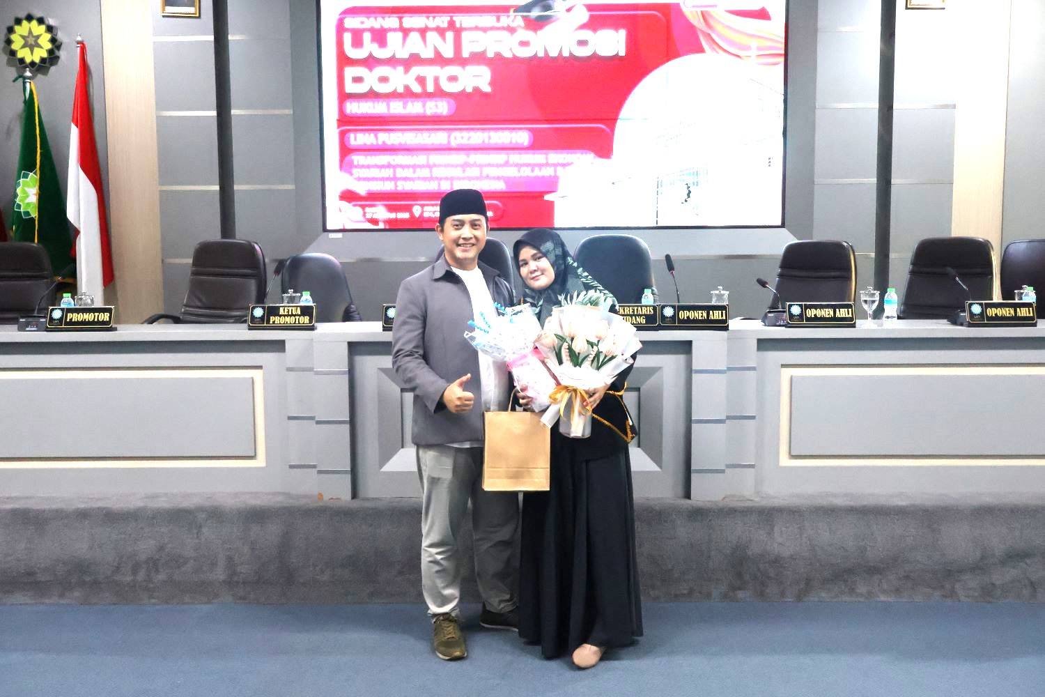 Argumentatif, rasional, dan komunikatif, itulah narasi yang layak disematkan kepada Lina Pusvisasari saat ia mempertahankan Disertasinya menjawab semua pertanyaan tim penguji dalam sidang senat terbuka ujian promosi doktor di Pascasarjana UIN SGD Bandung, di Aula Lantai 4 Gedung Pascasarjana, Kampus 2 Jalan Soekarno-Hatta,Bandung,Rabu,27 Agustus 2025.