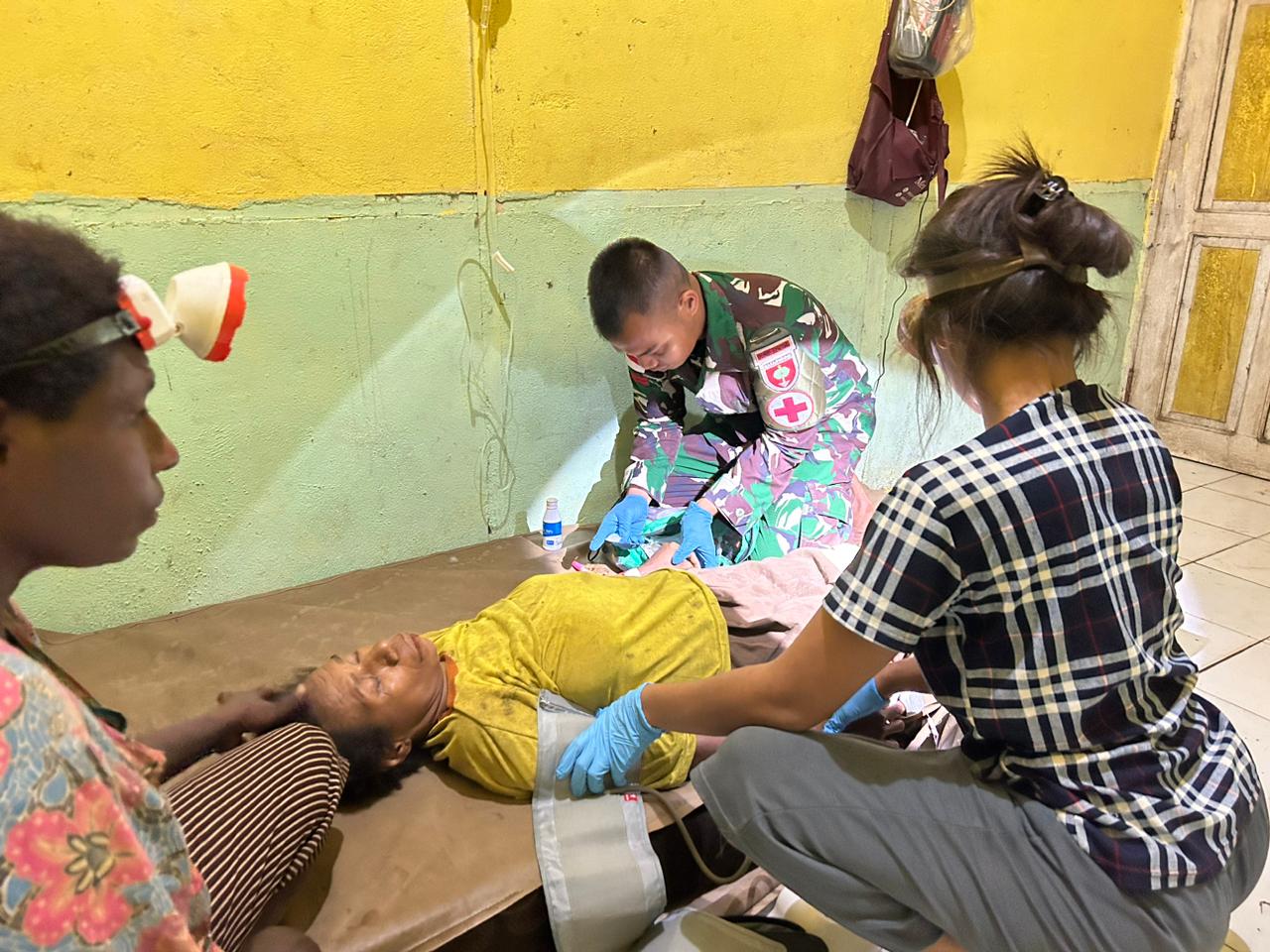 Dengan ketersedian peralatan dan obat-obatan seadanya di Pustu tersebut, personel Satgas dengan Bidan akhirnya ibu hamil dapat memberikan penanganan yang maksima sehingga dapat menyelamatkan calon bayinya.