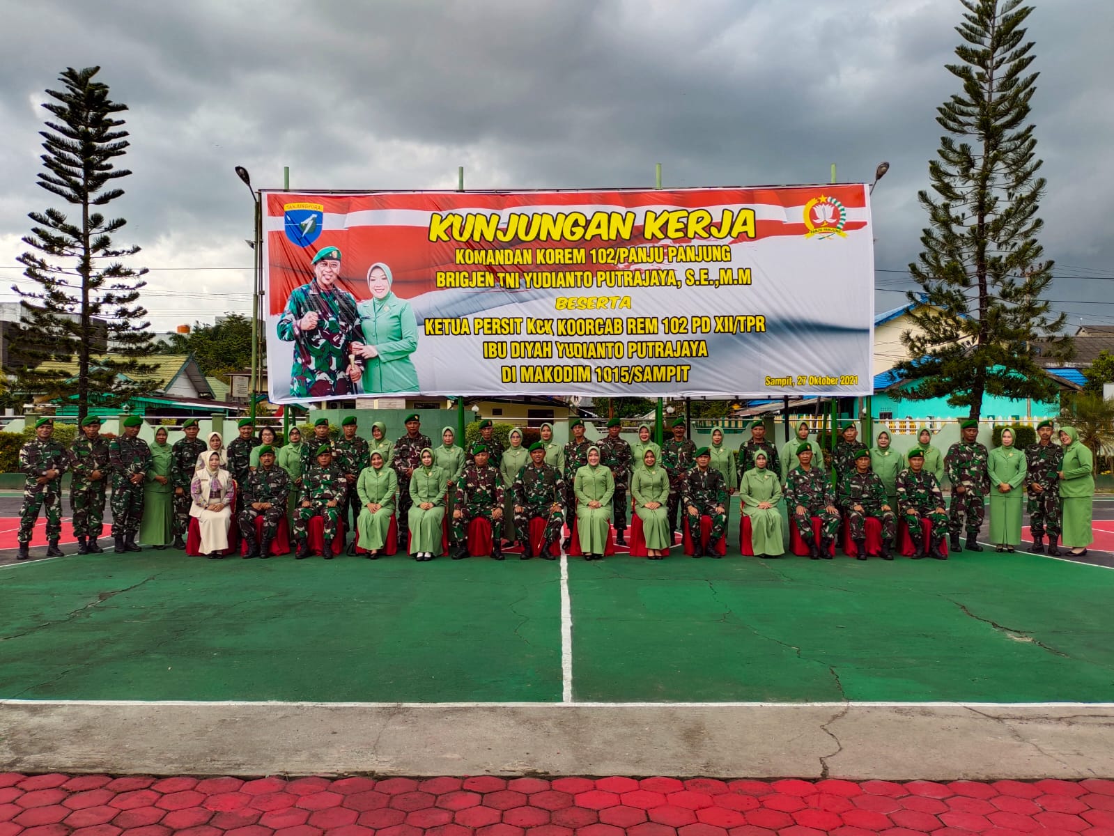 Kunjungan orang nomor satu di Korem 102/Panju Panjung ke Kodim 1015/Sampit dalam rangka kunjungan kerja sekaligus untuk perkenalan sebagai Komandan Korem 102/Panju Panjung yang baru, yang dilanjutkan dengan penyerahan cinderamata kepada Danrem 102/Panju Panjung, Brigjen TNI Yudianto Putrajaya, SE, MM, penyerahan bantuan 150 sak semen kepada tiga pondok pesantren yang berada diwilayah Kodim 1015/Sampit serta penanaman pohon.