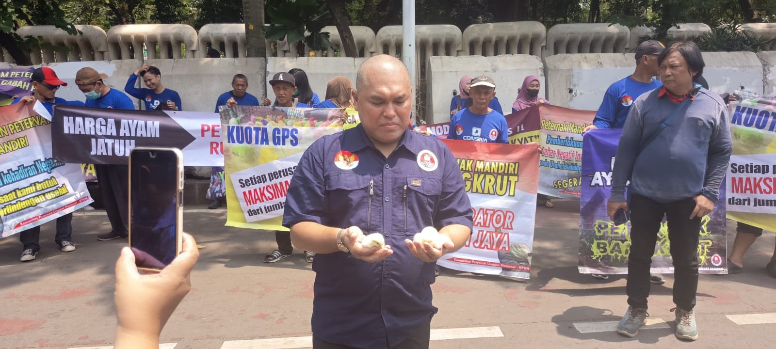 Jakarta Pusat-Komunitas Peternak Unggas Nasional (KPUN) unjuk rasa di depan monas Jakarta Pusat. Kamis (09/10/25).