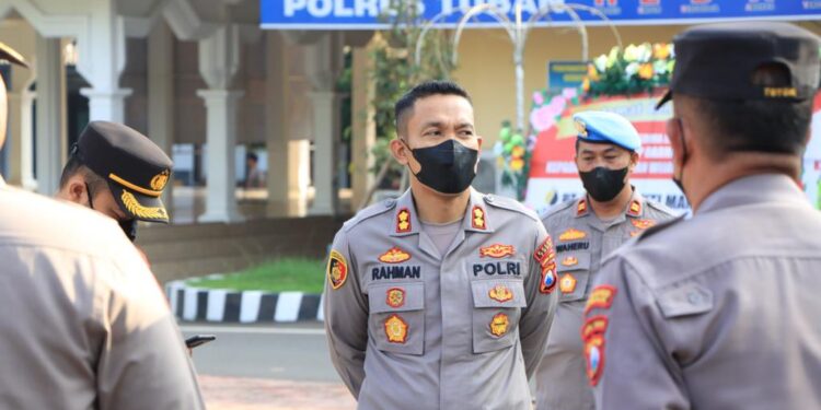 Tuban – bedanews.com – Untuk pertama kalinya sejak resmi menjabat Kapolres Tuban pada (12/07), hari ini AKBP Rahman Wijaya, S.I.K, S.I.K, M.H memimpin apel perdana dihalaman belakang Polres Tuban, Selasa (19/07).
