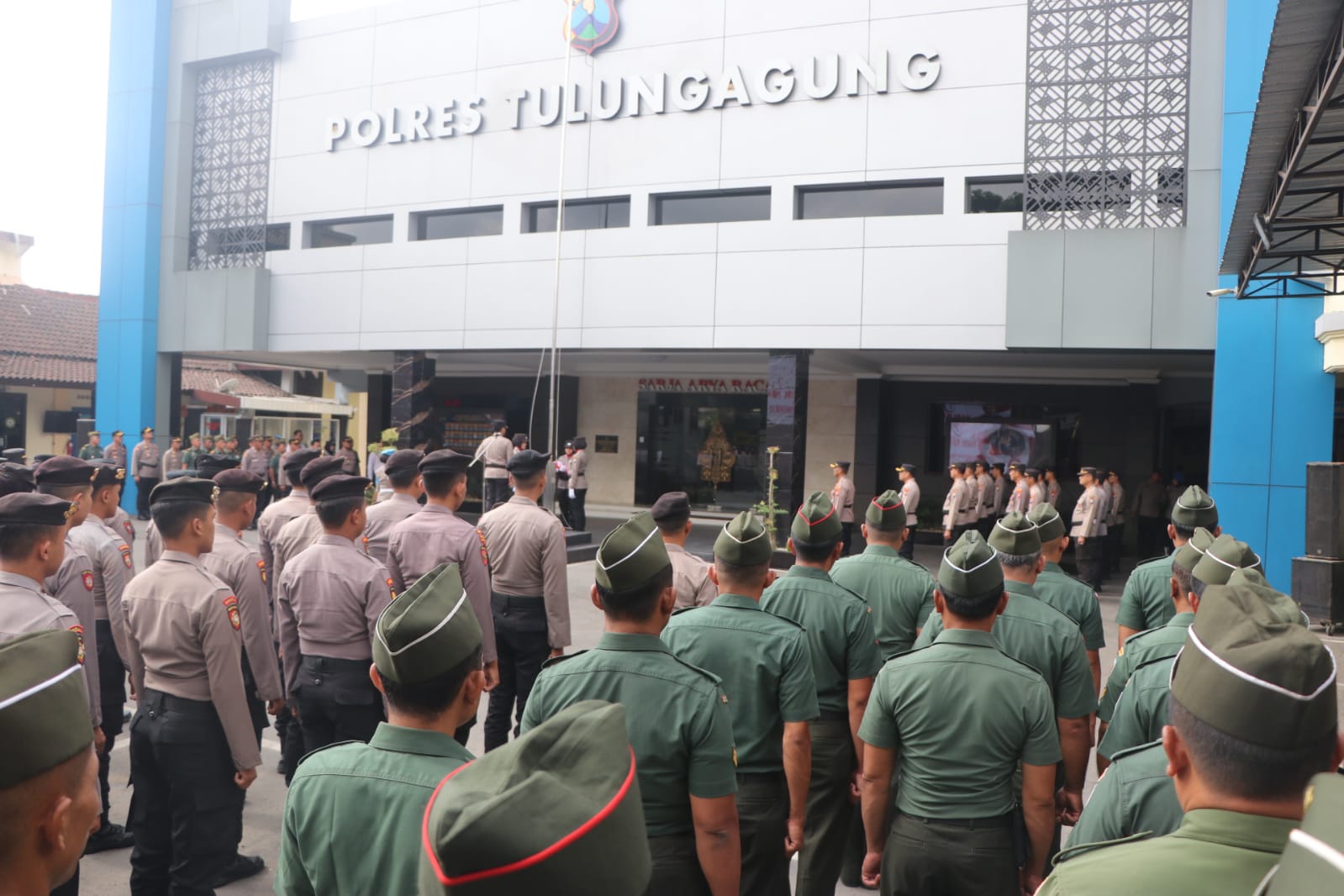“Upacara bendera sebagai bentuk soliditas dan sinergitas serta memupuk kesadaran nasional bagi Anggota Kodim 0807/Tulungagung dan Anggota Polres Tulungagung serta mewujudkan situasi kamtibmas yang kodusif di wilayah Tulungagung,” sambungnya.