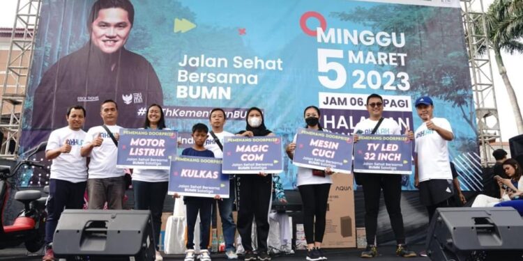 Salatiga – bedanews.com – Jalan Sehat Bersama BUMN dalam rangka perayaan HUT ke-25 BUMN kembali sukses digelar di Kota Salatiga, Jawa Tengah, pada Minggu (5/3).