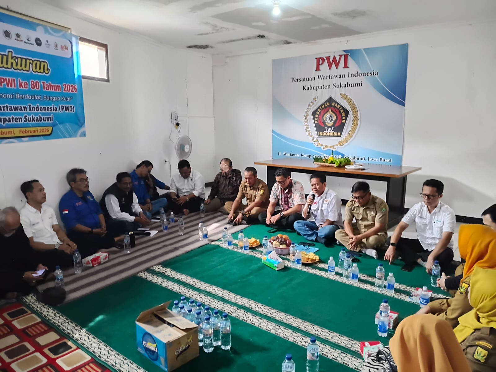 SUKABUMI || Bedanews.com – Nuruddin Zain Syamsi, Plt Ketua PWI Kabupaten Sukabumi tegaskan, Hari Pers Nasional dan Hari Ulang Tahun PWI ke-80 tahun 2026 ini, sebagai ruang MUHASABAH bagi Wartawan, Senin (09-02-2026), di kantor Sekretariat PWI Kabupaten Sukabumi, yang dihadiri sejumlah pejabat Pemkab dan pengurus PWI lainnya serta anggota UKW PWI Kabupaten Sukabumi, yang tercatat.