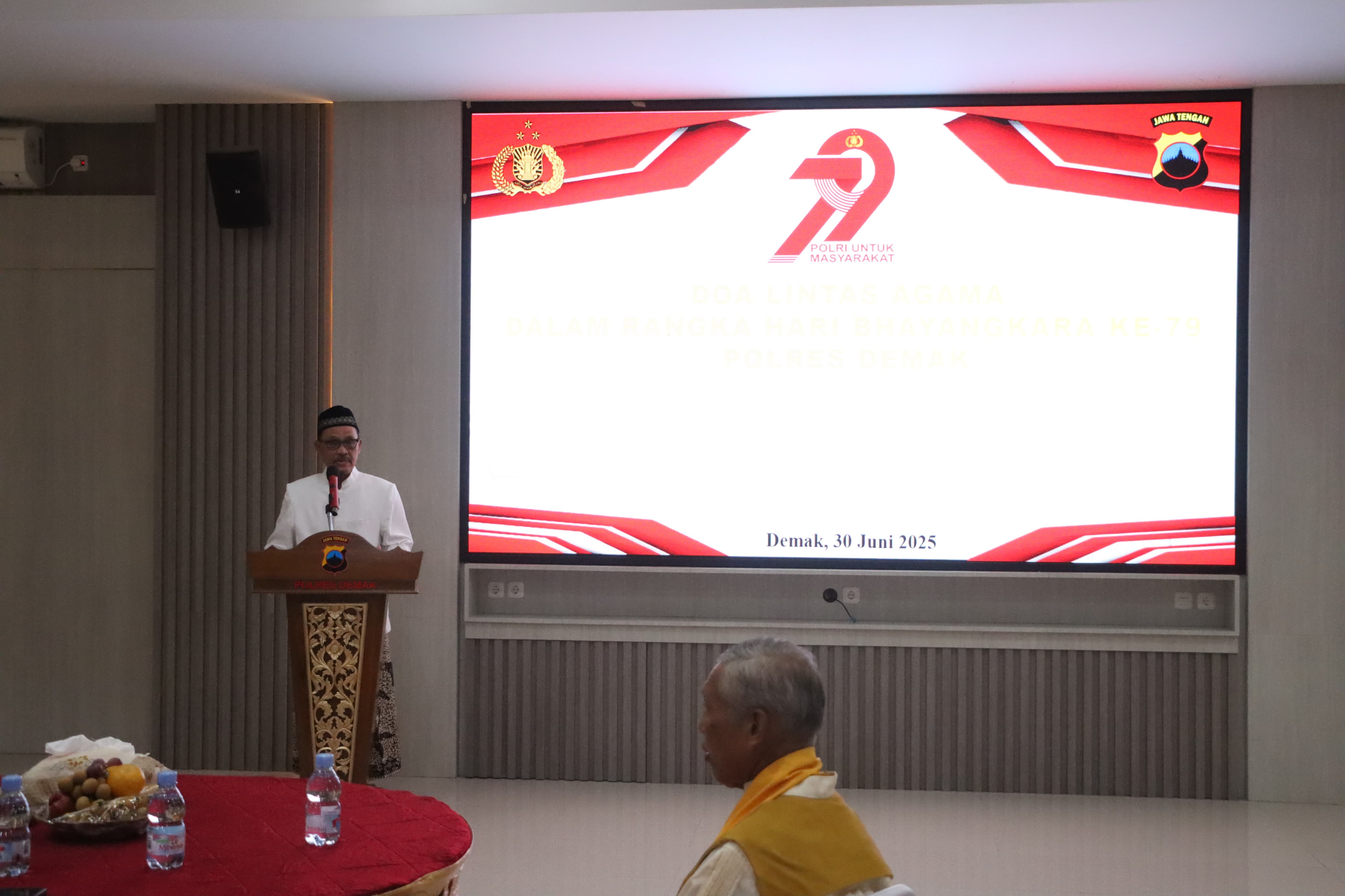 DEMAK || Bedanews.com – Kepolisian Resor (Polres) Demak, Jawa Tengah menggelar acara do’a bersama lintas agama, Senin (30/6) di Aula Wicaksana Laghawa. Acara ini diselenggarakan dalam rangka menyambut Hari Bhayangkara ke-79 yang jatuh pada tanggal 1 Juli 2025, besok.
