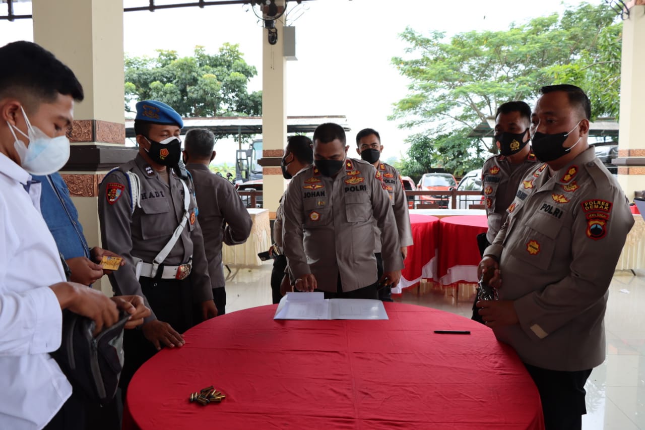 Pemeriksaan dan pengecekan personel yang memegang senpi dinas itu dilakukan setelah apel pagi di Pendopo Mapolres Demak, Senin (21/2/2022). Secara teknis pemeriksaan dilakukan oleh Seksi Propam Polres Demak.