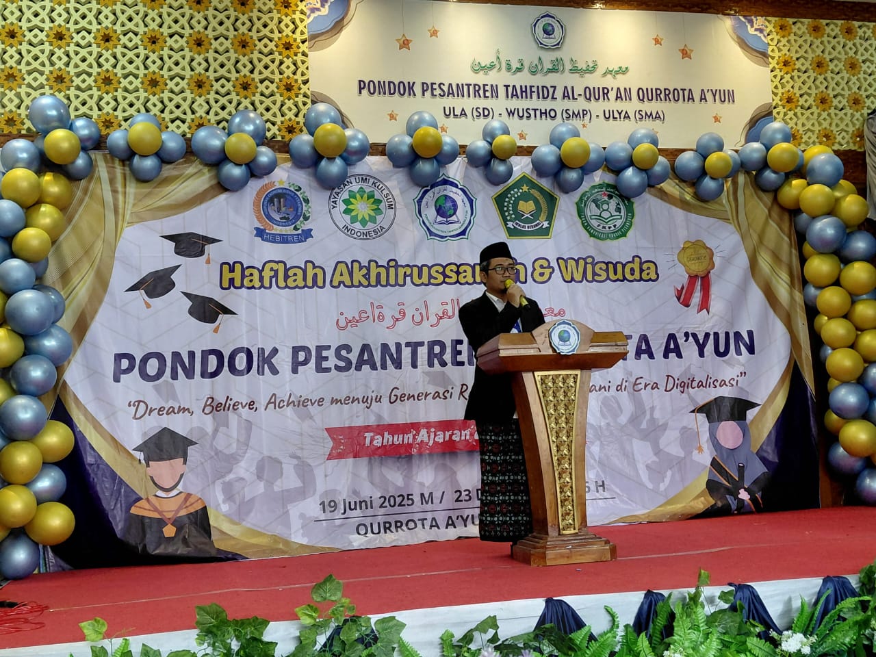 SAMBUTAN-Pimpinan Pondok Pesantren Qurrata ‘Ayun, K.H. Zainul Muttaqin, SE, M.Pd, saat memberikan sambutan. (Foto Ist).