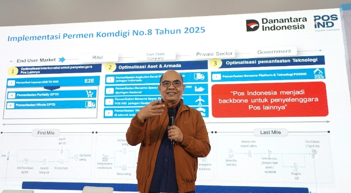 Direktur Business Development & Portfolio Management Pos Indonesia Prasabri Pesti mengatakan, strategi Pos Indonesia memperkuat posisinya sebagai backbone layanan pos dan logistik nasional merupakan bentuk dan dukungan strategis perusahaan terhadap Permen Komunikasi dan Digital No. 8 Tahun 2025, yang mendorong transformasi digital, efisiensi operasional, serta pemerataan layanan logistik hingga ke pelosok Indonesia.