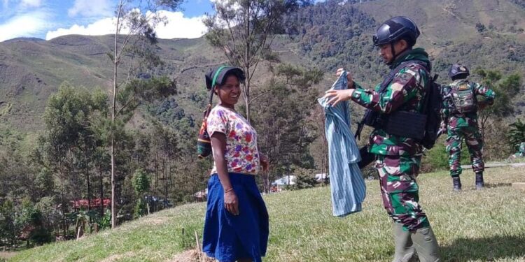 Lanny Jaya, bedanews.com — Pos Malagay Satgas Yonif Mekanis 203/AK melaksanakan kegiatan anjangsana ke rumah-rumah warga hingga ke sekolah di sekitar Distrik Malagay guna berinteraksi secara langsung dan terus mempererat tali silaturahmi serta menjalin komunikasi dengan masyarkat hingga tokoh-tokoh masyarakat di Distrik Malagay, Kabupaten Lanny Jaya, Papua, Sabtu (18/03/2023).
