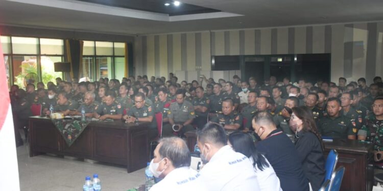 Semarang – bedanews.com – Prajurit dan PNS Kodam IV/Diponegoro mengikuti acara sosialisasi Perjanjian Kerja Sama antara TNI AD dengan Bank Himbara (BRI, BNI dan Bank Mandiri), bertempat di Aula Denmadam IV/Diponegoro, Makodam IV/Diponegoro, Jl. Perintis Kemerdekaan, Watugong, Kamis (15/9/2022).