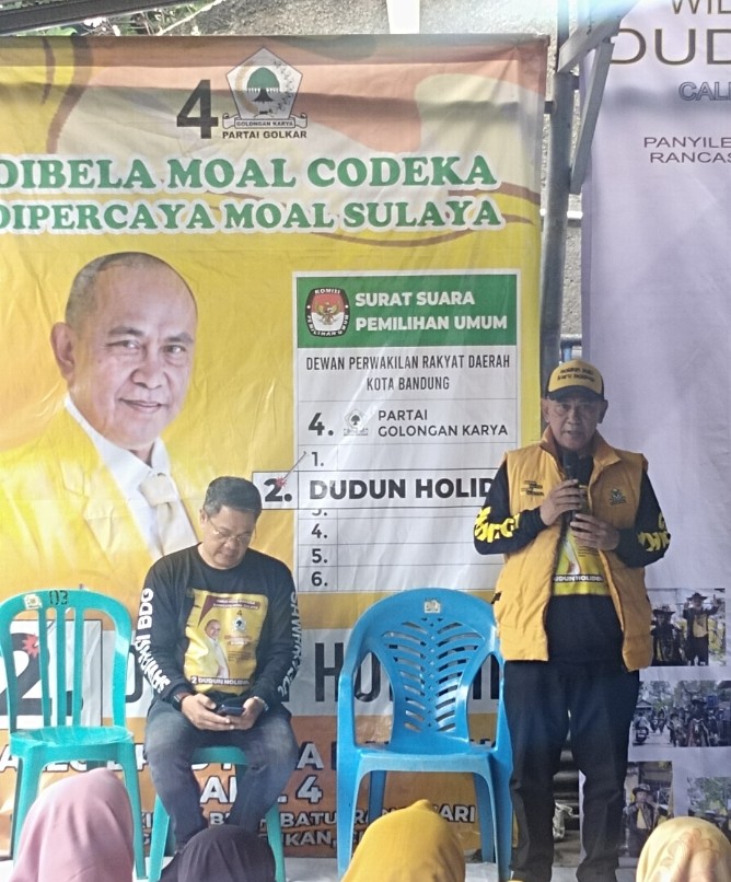Bandung,BEDAnews – Politikus Partai Golkar Kota Bandung yang juga maju sebagai calon legislatif di Pemilu 2024, Dudun Holidin terus memperkuat basis suaranya, dengan bersilahturahmi dan bersosialisasi dengan warga.