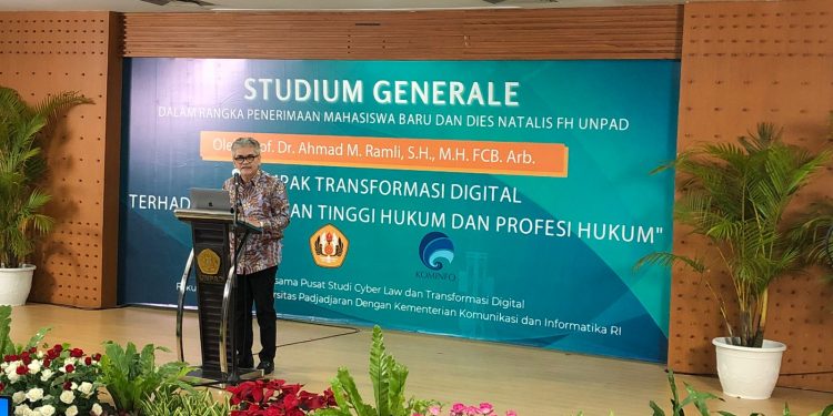 Demikian disampaikan oleh Pakar Transformasi Digital Prof. Dr. Ahmad M Ramli, SH, MH, FCBArb dalam Studium Generale dan Webinar Cerdas bertelekomunikasi Kerjasama Kementerian Kominfo RI dengan Pusat Studi Cyber Law dan Transformasi Digital Universitas Padjadjaran di Kampus UNPAD, Senin (30/8/2021) yang dilive streamingkan melalui kanal Youtube dan platform Zoom.