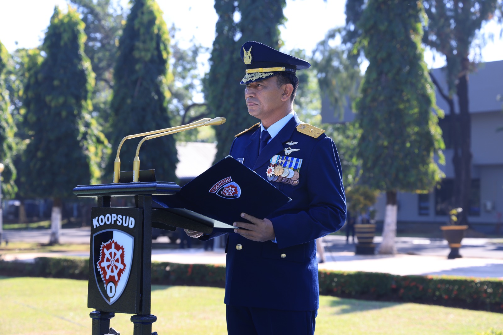 Makassar – Segenap personel Lanud Sultan Hasanuddin mengikuti upacara peringatan Hari Bakti ke-78 TNI Angkatan Udara tahun 2025 di Lapangan Markas Komando Operasi Udara (Makoopsud) II, Makassar, Selasa (29/7/2025). Upacara diikuti seluruh personel TNI AU Wilayah Makassar mulai dari Koopsud II, Kosek II, Lanud Sultan Hasanuddin dan Wing Komando II Kopasgat, dimana bertindak selaku Inspektur Upacara Kaskoopsud II Marsma TNI Indan Gilang Buldansyah, S.Sos.