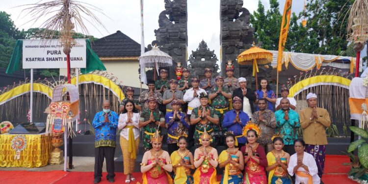 Manokwari – bedanews.com – Panglima Komando Gabungan Wilayah Pertahanan (Pangkogabwilhan) III, Letjen TNI I Nyoman Cantiasa, S.E., M.Tr.(Han)., resmikan Pura Ksatria Shanti Bhuana Kodam XVIII/Kasuari yang berada di kompleks Makodam, Trikora, Arfai 1, Manokwari, Papua Barat, Minggu (15/5/2022).