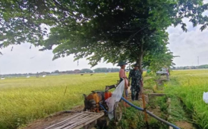 Dukung Ketahanan Pangan, Pelda Nurhariyadi Dampingi Petani Usir Hama dan Cek Pompa Air