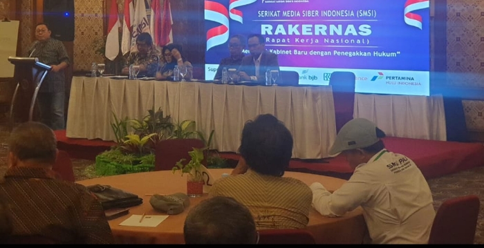 Makali yang mendapat mandat sebagai pemimpin sidang, meminta kepastian peserta Rakernas berkaitan aspirasi yang meminta Rakernas diperluas dan dilanjutkan dengan Kongres ll SMSI 2024.