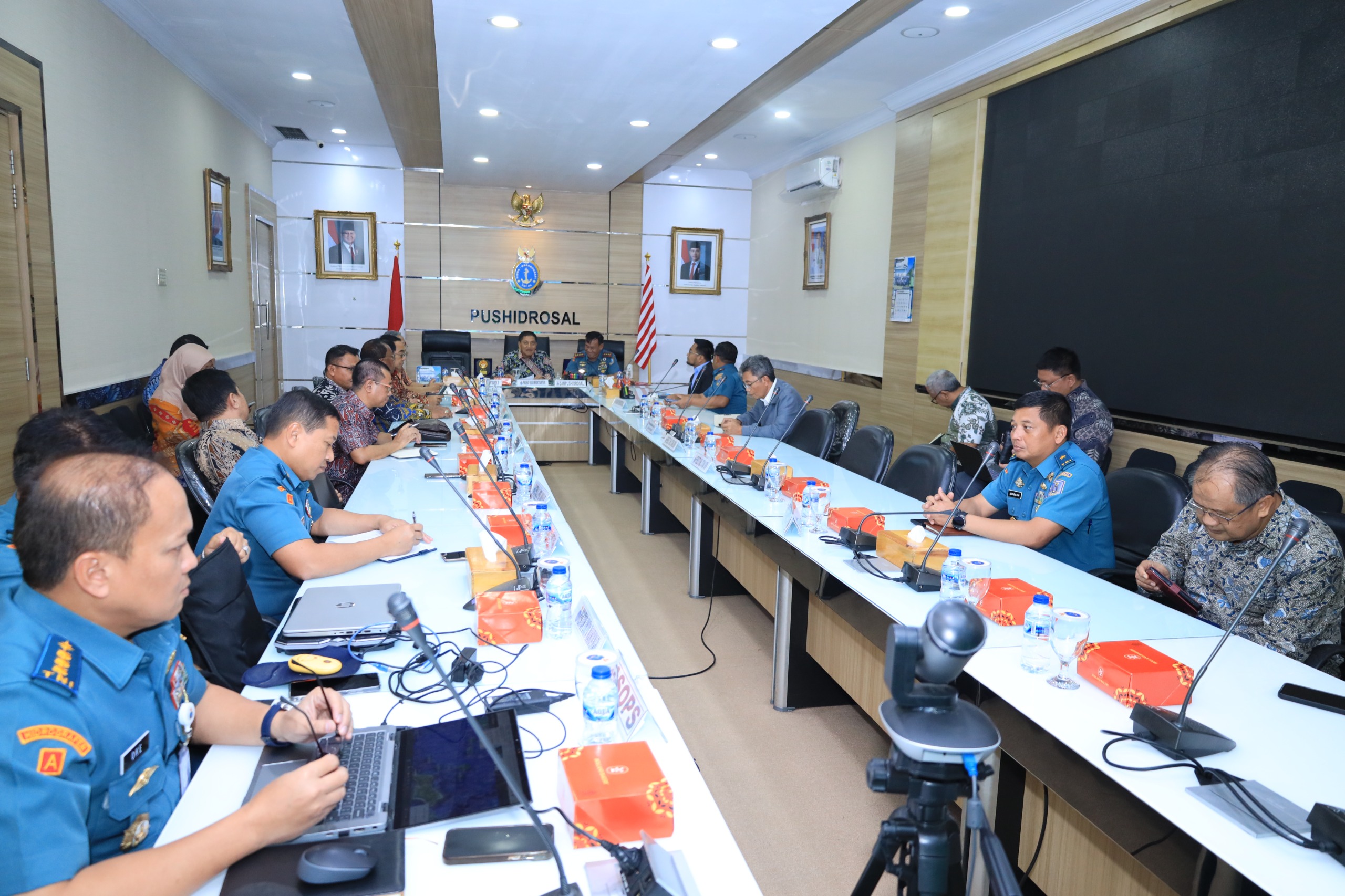 Rapat yang membahas sinergi dan penguatan riset kelautan nasional, dipimpin oleh Direktur Jenderal Riset dan Pengembangan Kemendiktisaintek Dr. Mohammad Fauzan Adziman, S.T., M.Eng., Penasihat Khusus Mendiktisaintek, Laksamana TNI (Purn) Prof. Marsetio, serta Danpushidrosal Laksamana TNI Dr. Budi Purwanto, S.T., M.M., hadir pula perwakilan dari Kementerian PPN/Bappenas, Badan Riset dan Inovasi Nasional (BRIN), dan enam universitas dari wilayah timur Indonesia, yakni Universitas Hasanuddin (UNHAS) Makassar, Universitas Halu Oleo (UHO) Kendari, Universitas Pattimura (UNPATTI) Ambon, Universitas Sam Ratulangi (UNSRAT) Manado, Universitas Papua (UNIPA) Manokwari, dan Universitas Khairun (UNKHAIR) Ternate.