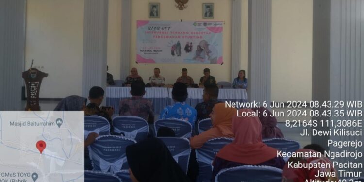PACITAN || bedanews.com – Babinsa Koramil 0801/07 Ngadirojo, Kodim 0801/Pacitan menghadiri rapat intervensi timbang serentak upaya pencegahan stunting, berlangsung di Balai Desa Pagerejo, Kec. Ngadirojo, Kab. Pacitan, Kamis (06/06/2024).