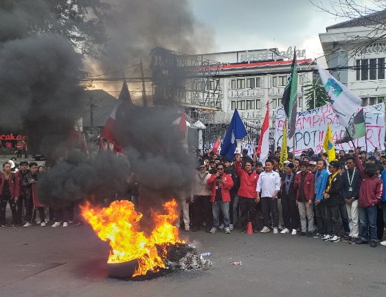 BANDUNG. BEDAnews.com – Ratusan massa dari organisasi mahasiswa dan beberapa kampus di kota Bandung kembali menggeruduk DPRD Provinsi Jawa Barat dam menyampaikan aspirasi mereka di depan gerbang Gedung DPRD Jawa Barat.