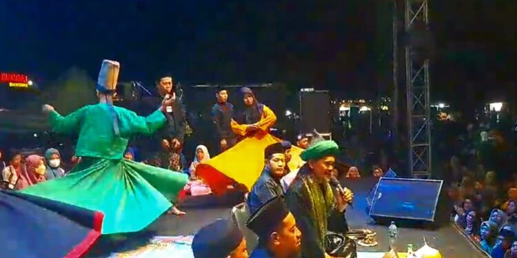Lagu kebangsaan itu mengawali acara Sholawat Kebangsaan dan Persatuan yang dihadiri KH Mohammad Ali Shodiqin atau yang lebih populer disapa Gus Ali Gondrong.